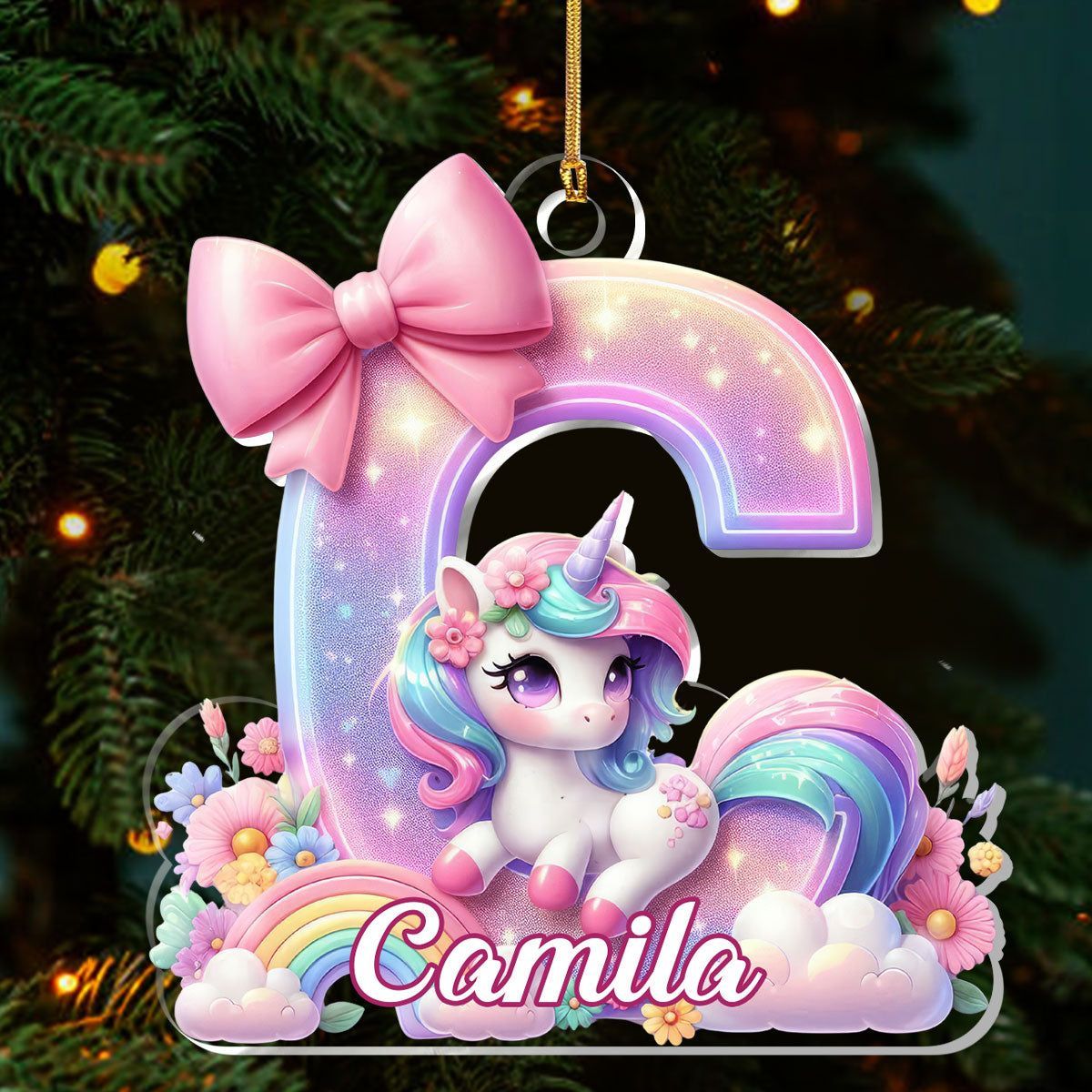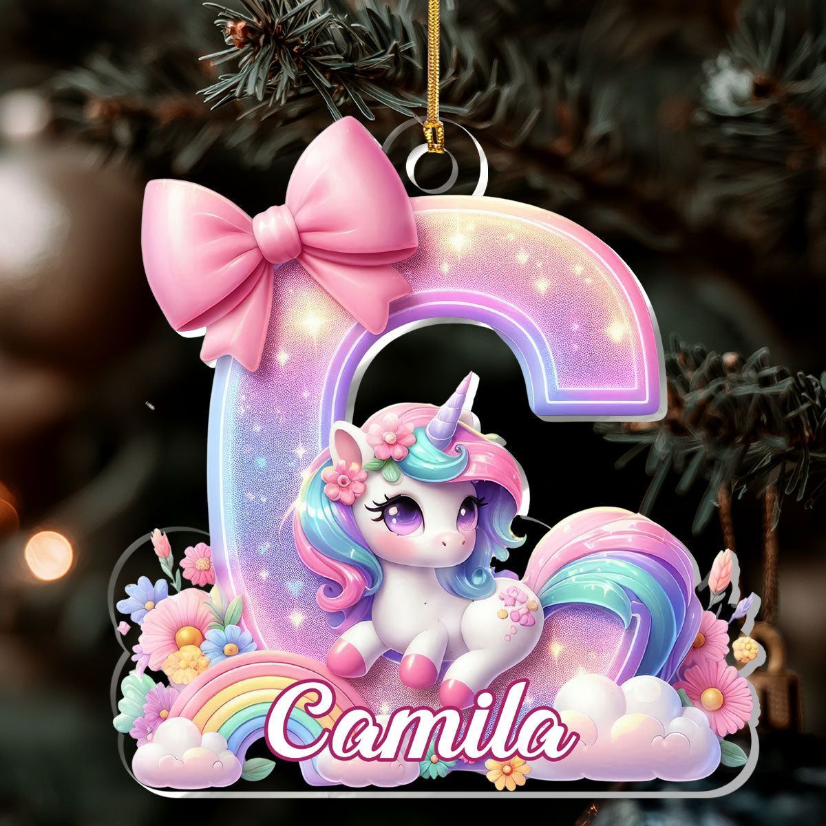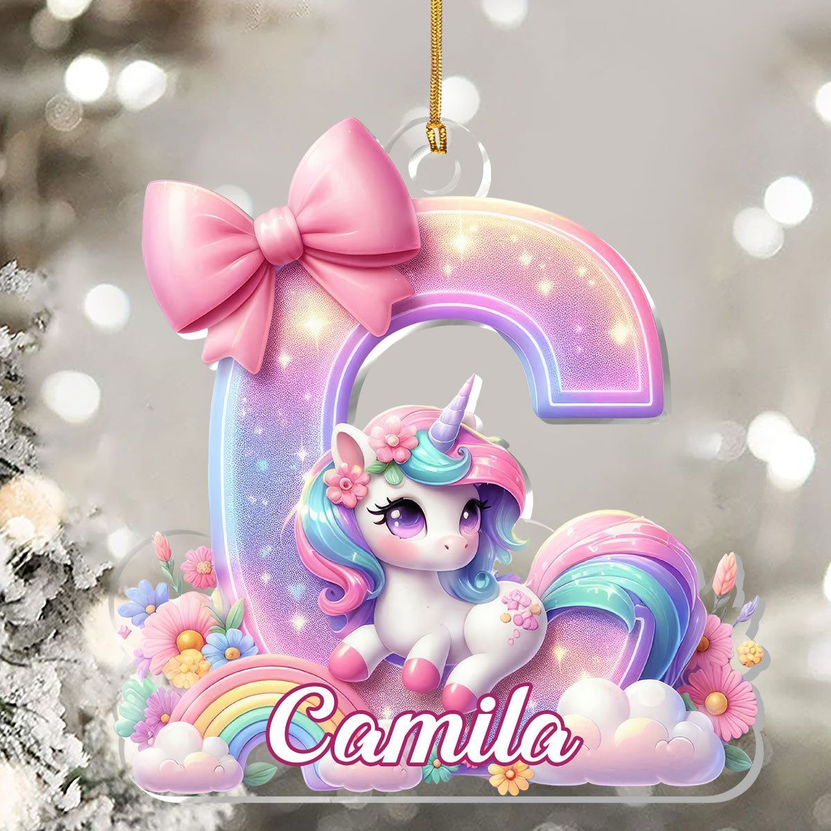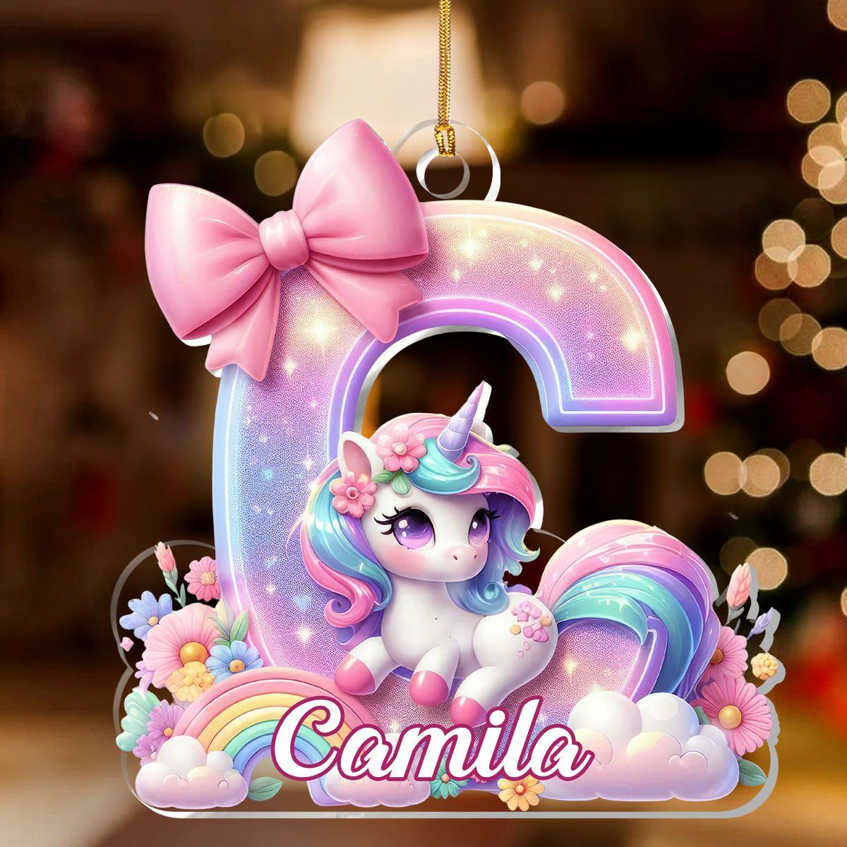 Søtt enhjørningsalfabet - Personlig 1-lags akrylornament