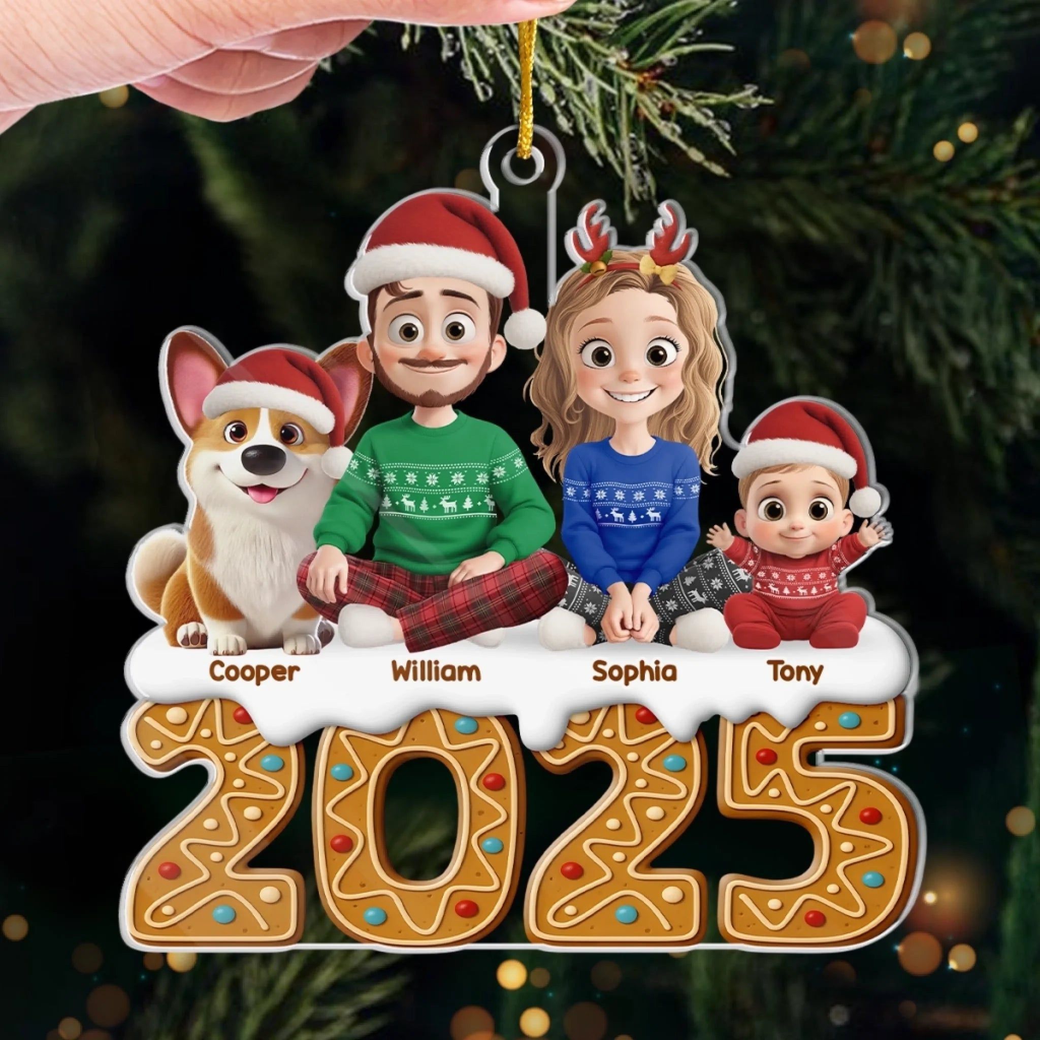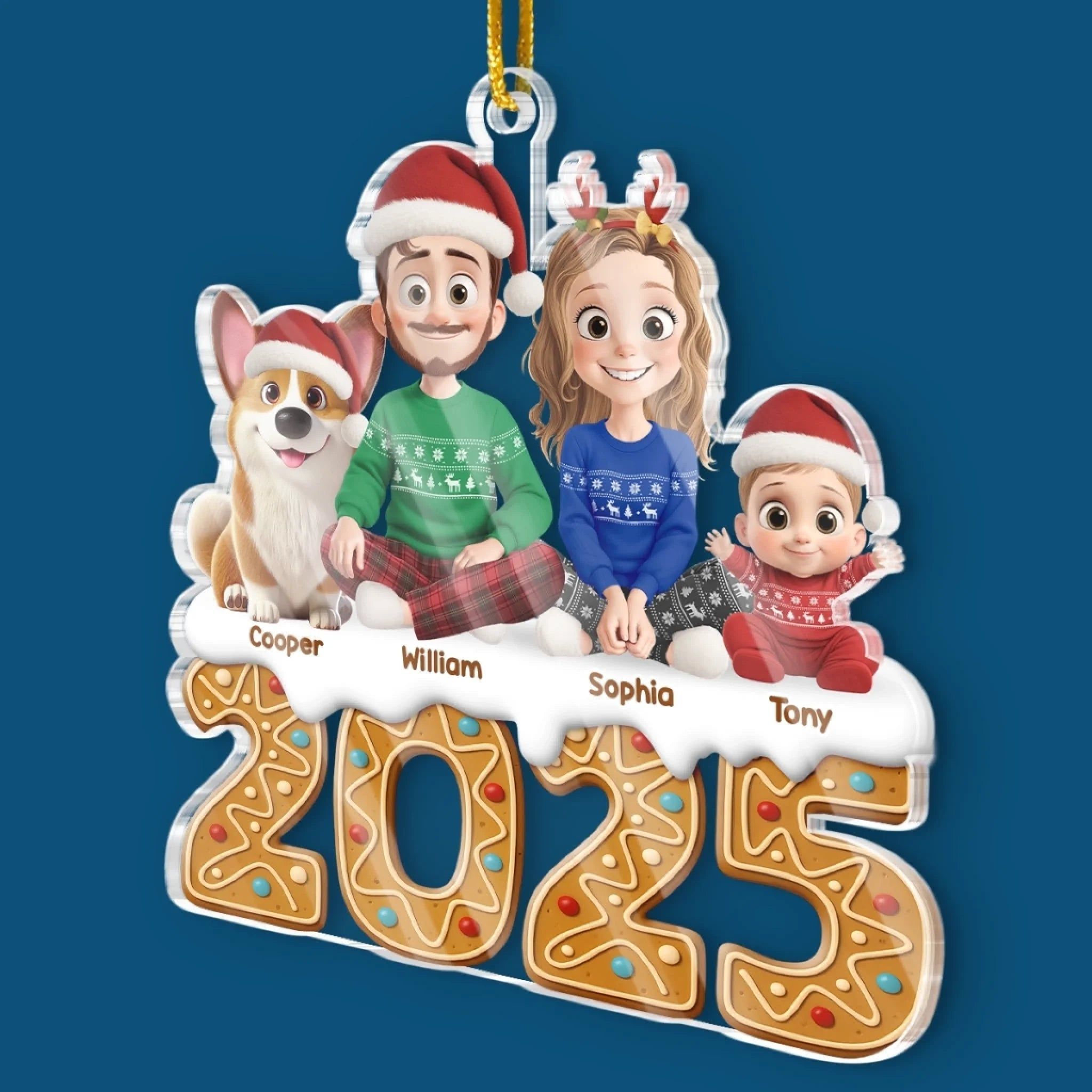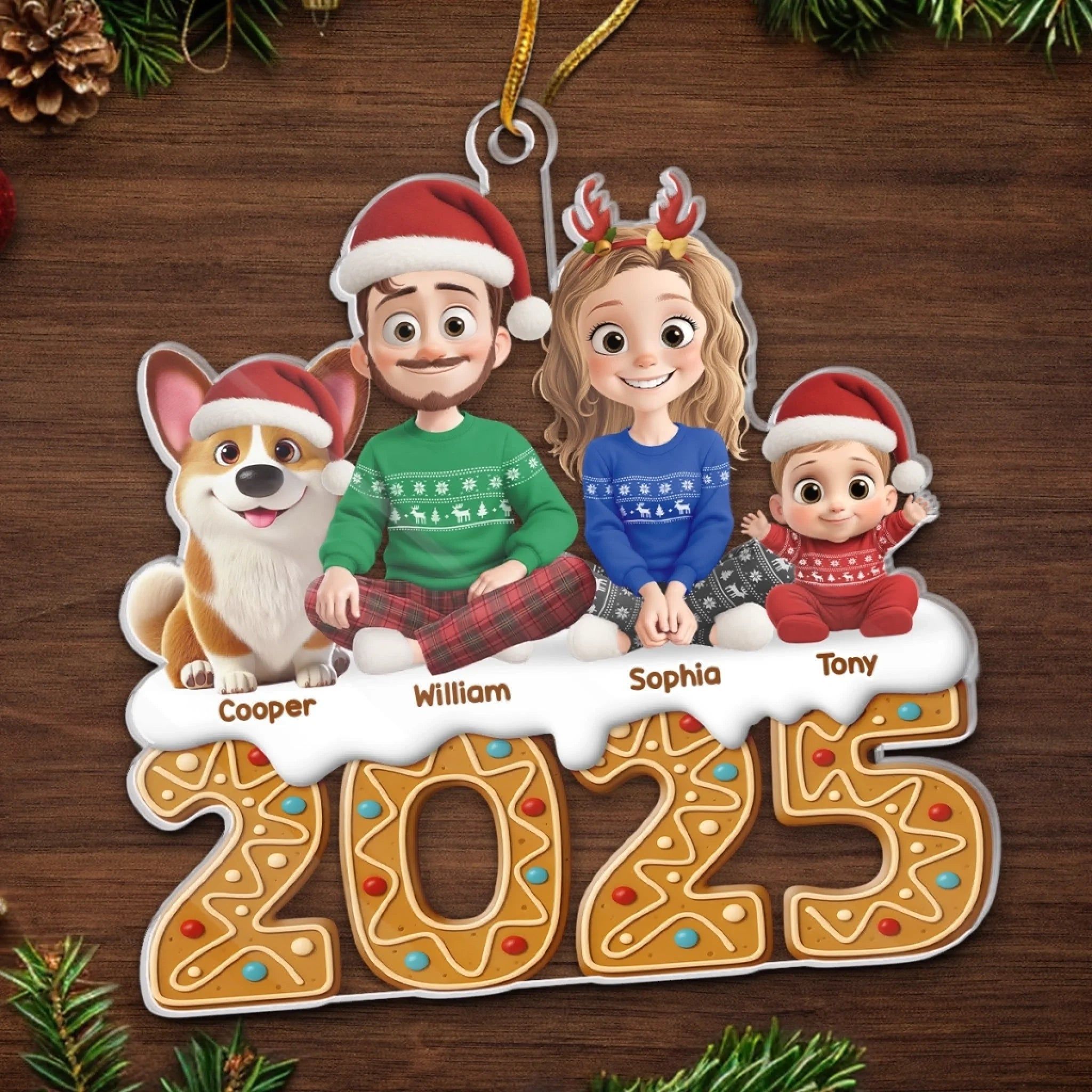 Tilpasset akrylornament - Personlige julebursdagsgaver til familie, hunde- og katteelskere - Pepperkakedrømmer, familietemaer