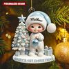 Søt baby som står ved siden av juletreet - 3D-effekt - Babyens første julepynt