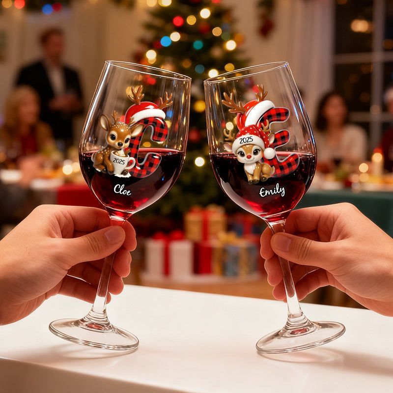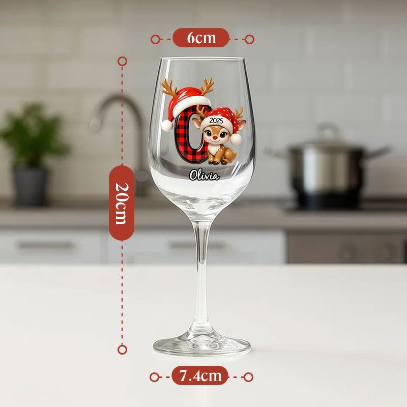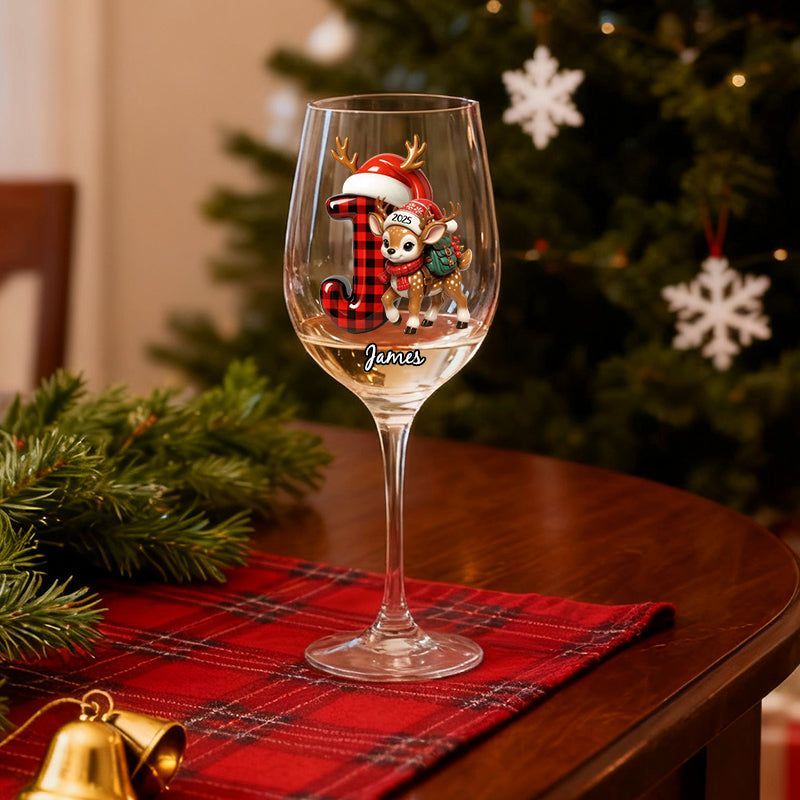 Festive and Cute Reindeer Christmas Letters - Personalized Wine Glasses and Stemless Wine Glasses