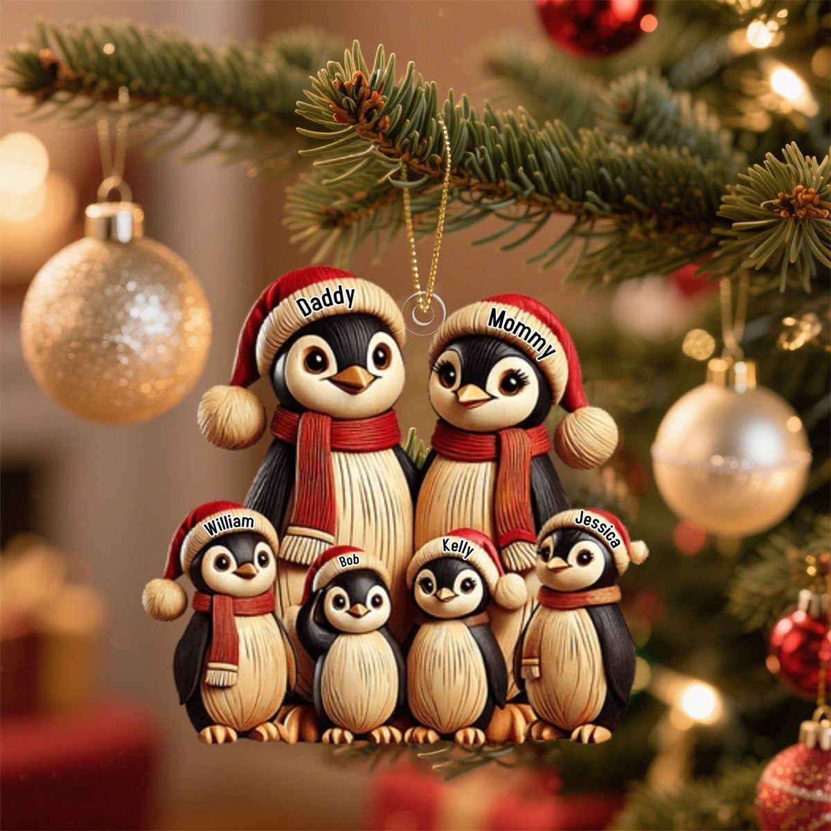 Pingvinfamilie - Personlig ornament, gave til familien