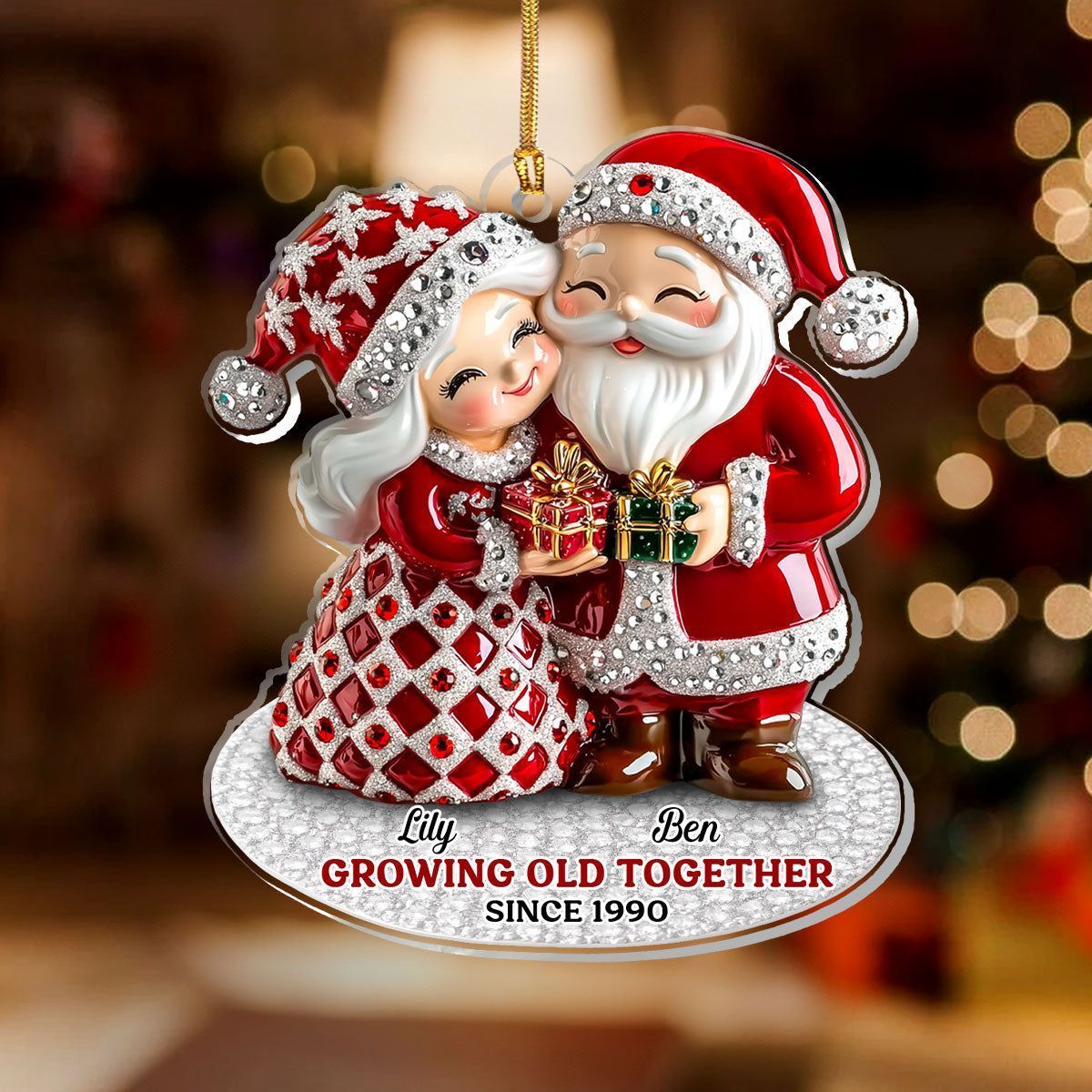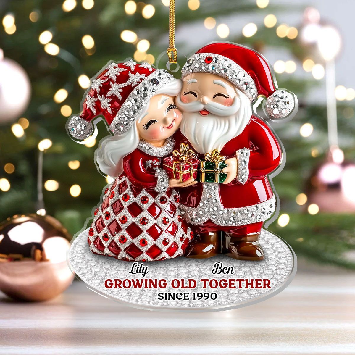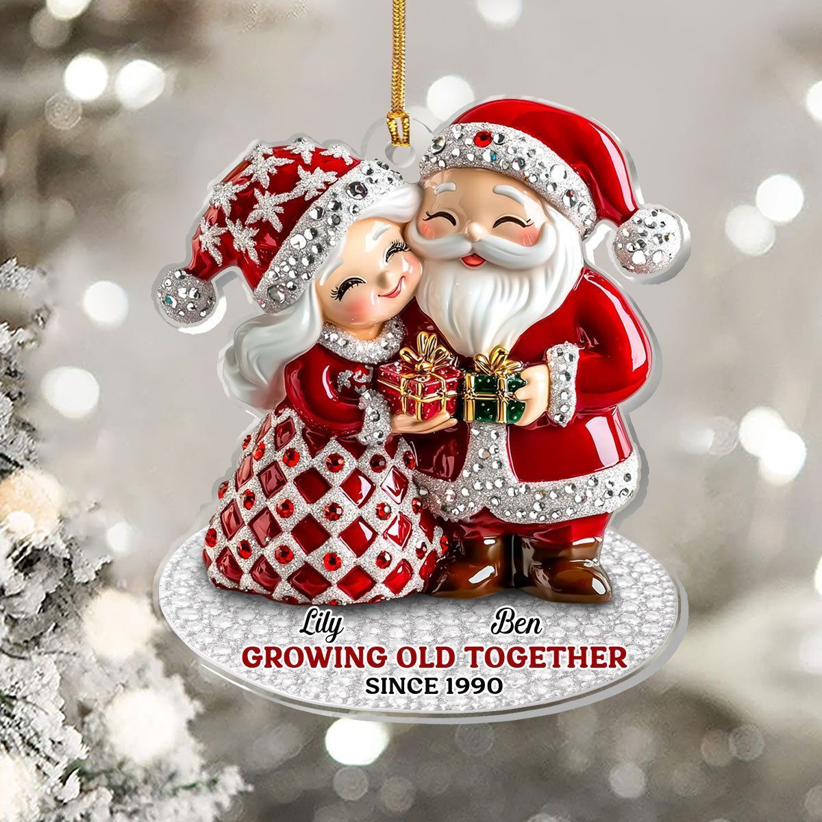 Julenissepar som blir gamle sammen - Personlig 1-lags akrylornament