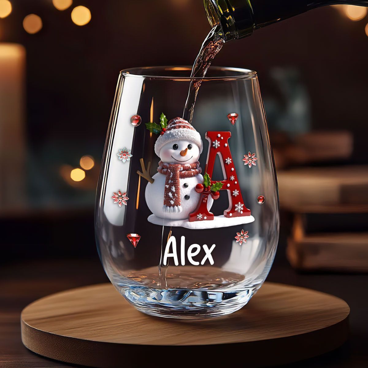 Snømann God Jul Til Familie Og Venner - Personlig Vinglass Uten Steng