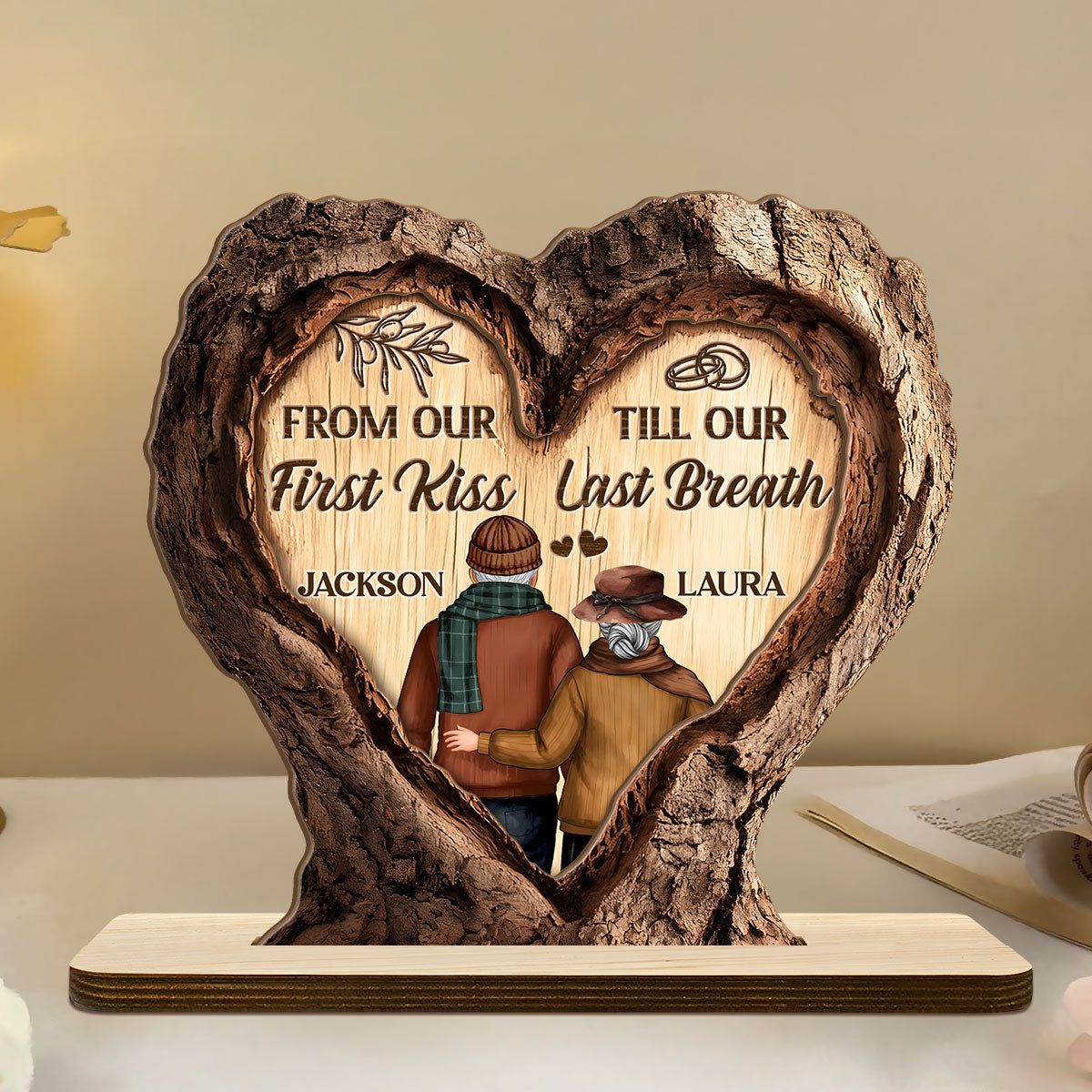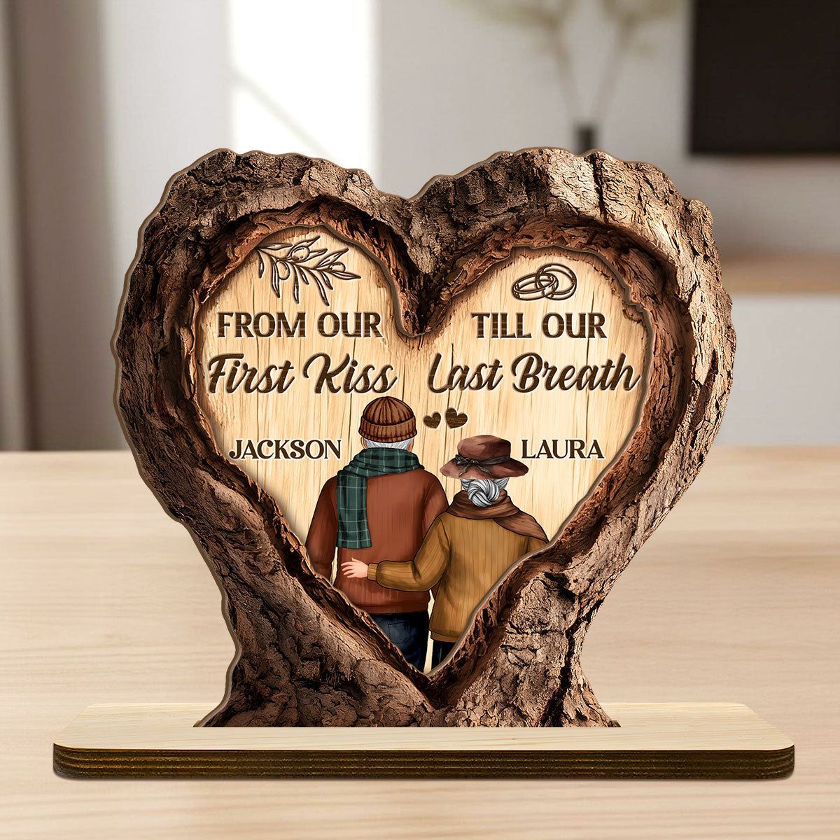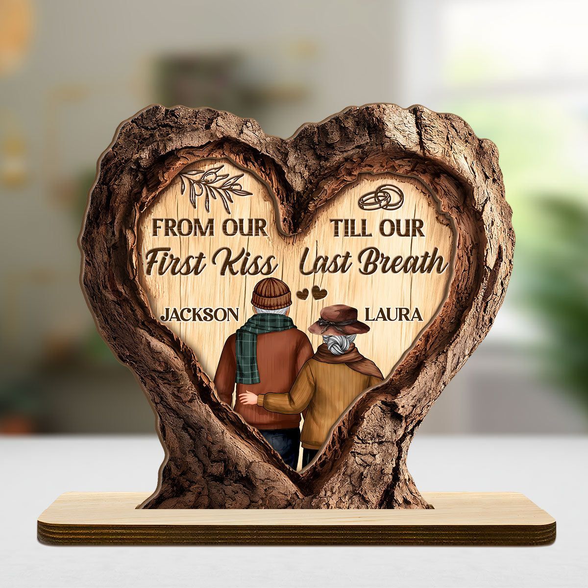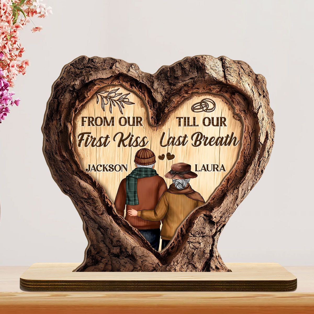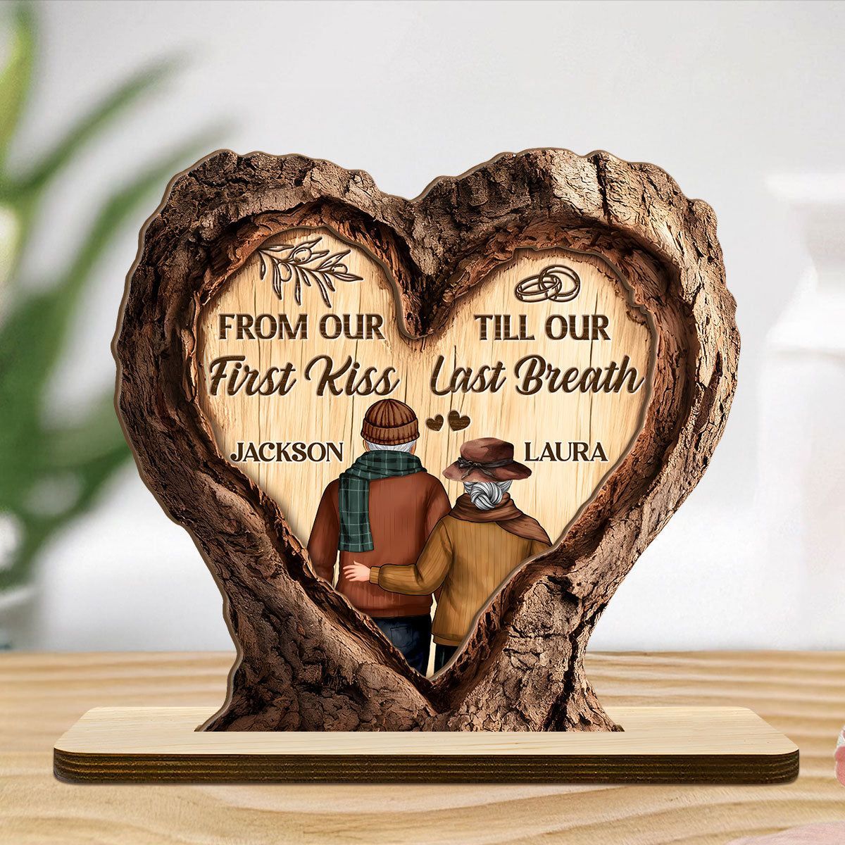 Et liv i kjærlighet – personlig 2-lags treplakett med flat base