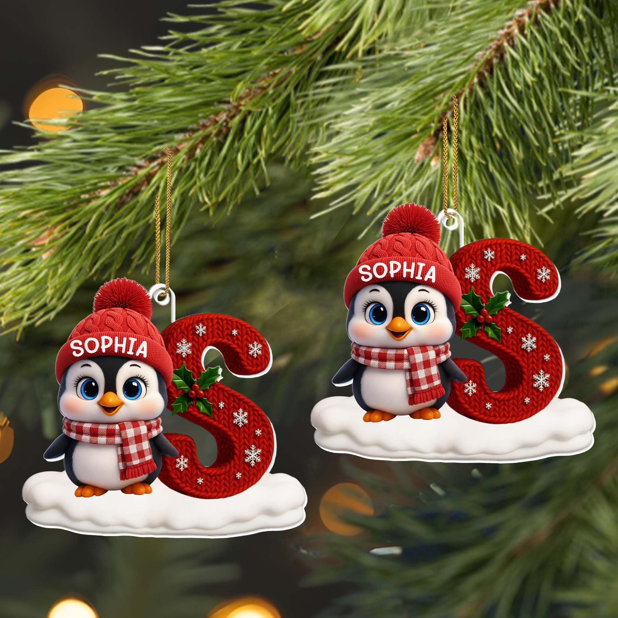 Feir julestemningen med pingvin og snø - Personlig akrylornament, julegave