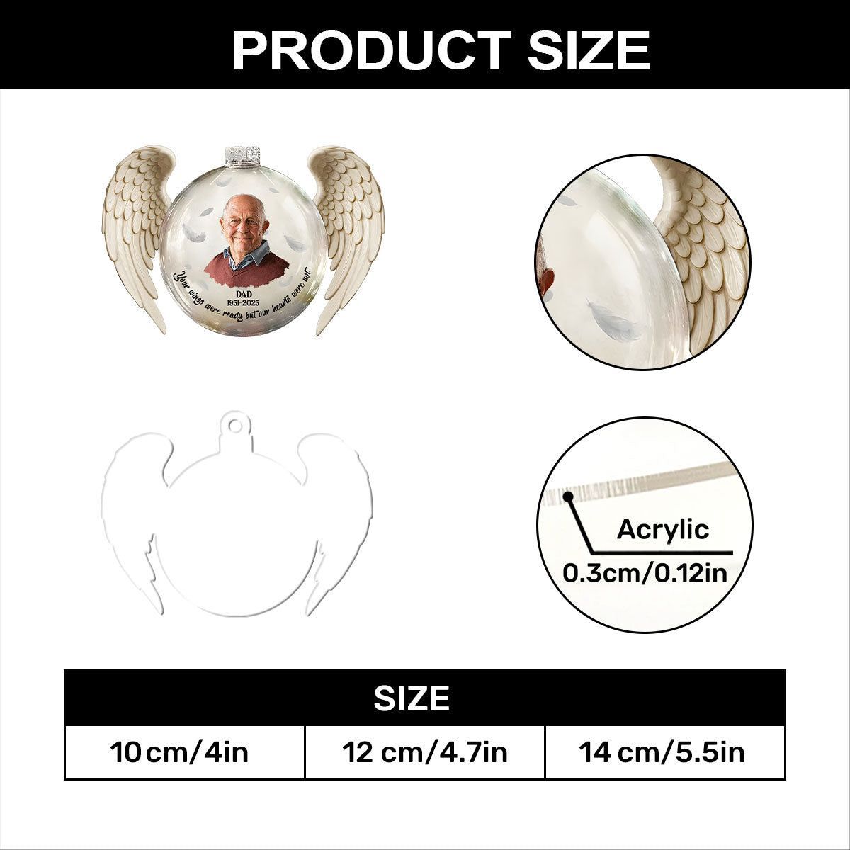 Personlig fotominne «Your Wings Were Ready» – personlig 1-lags akrylornament