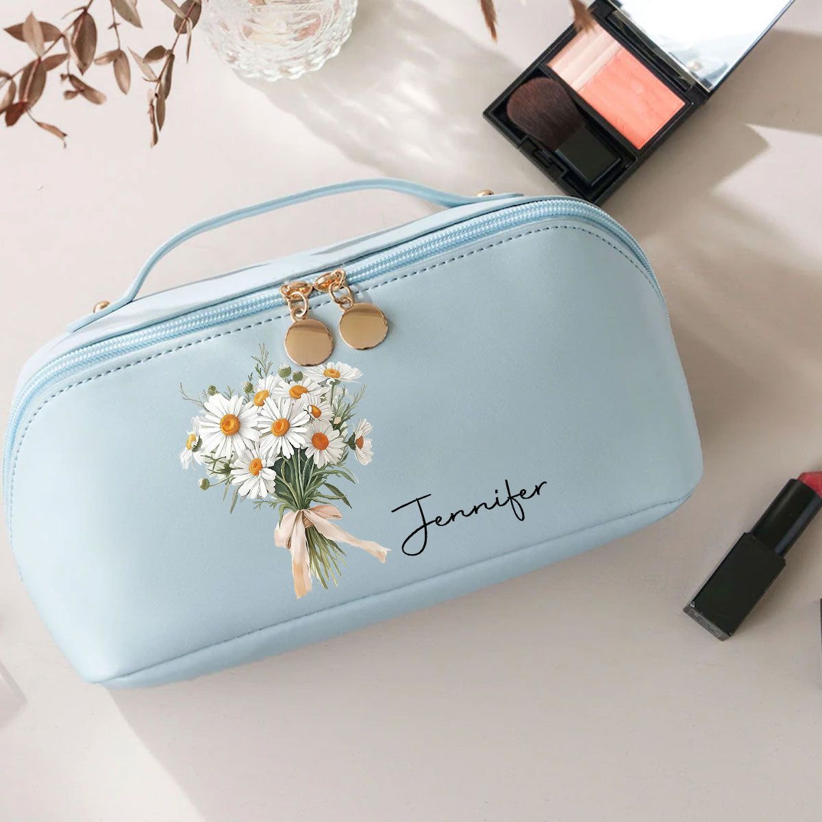 Blomster forteller ikke, de viser - Personlig tilpasset sminkepose i skinn