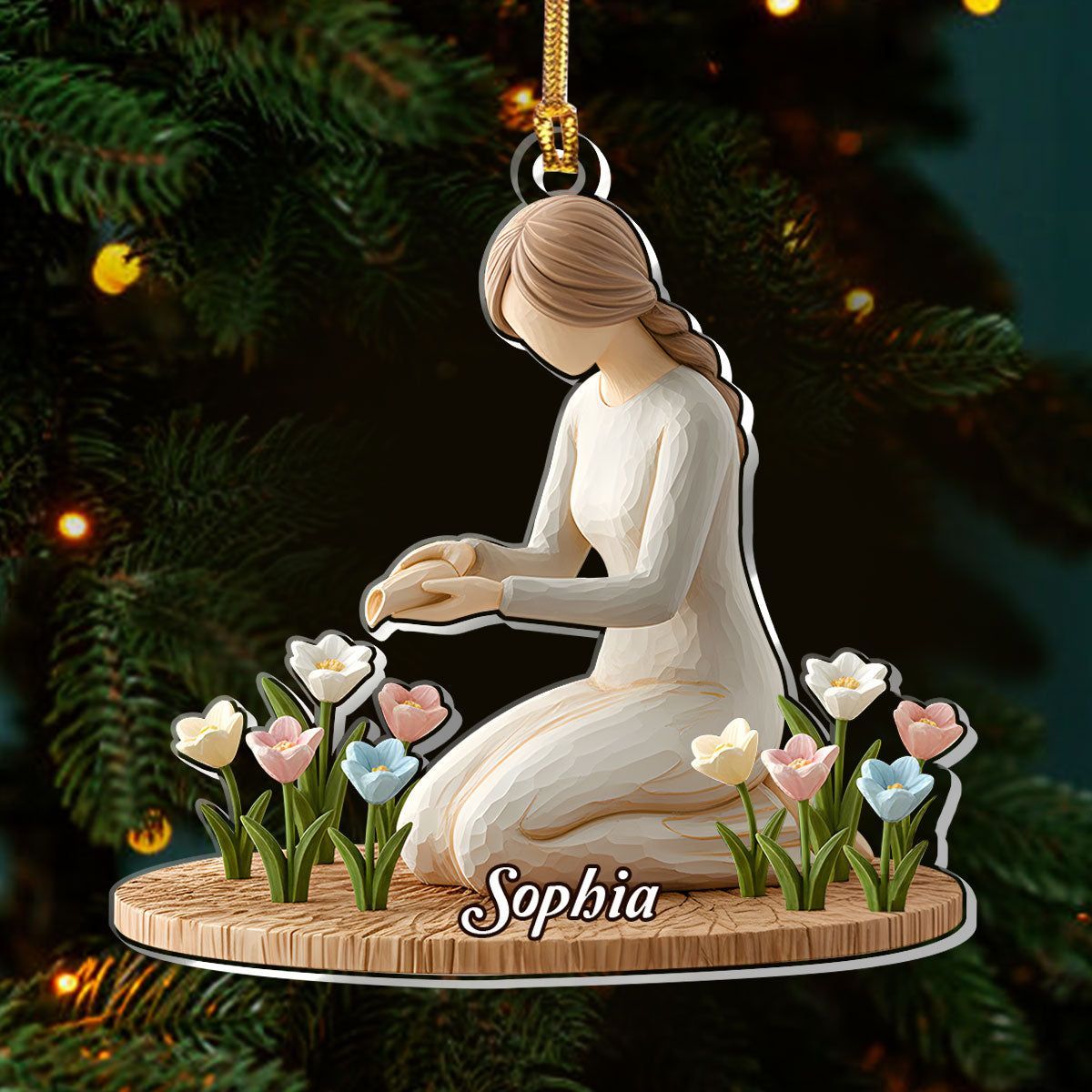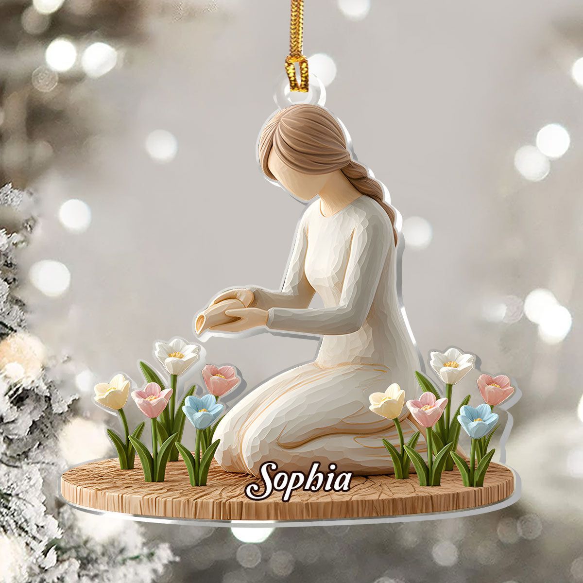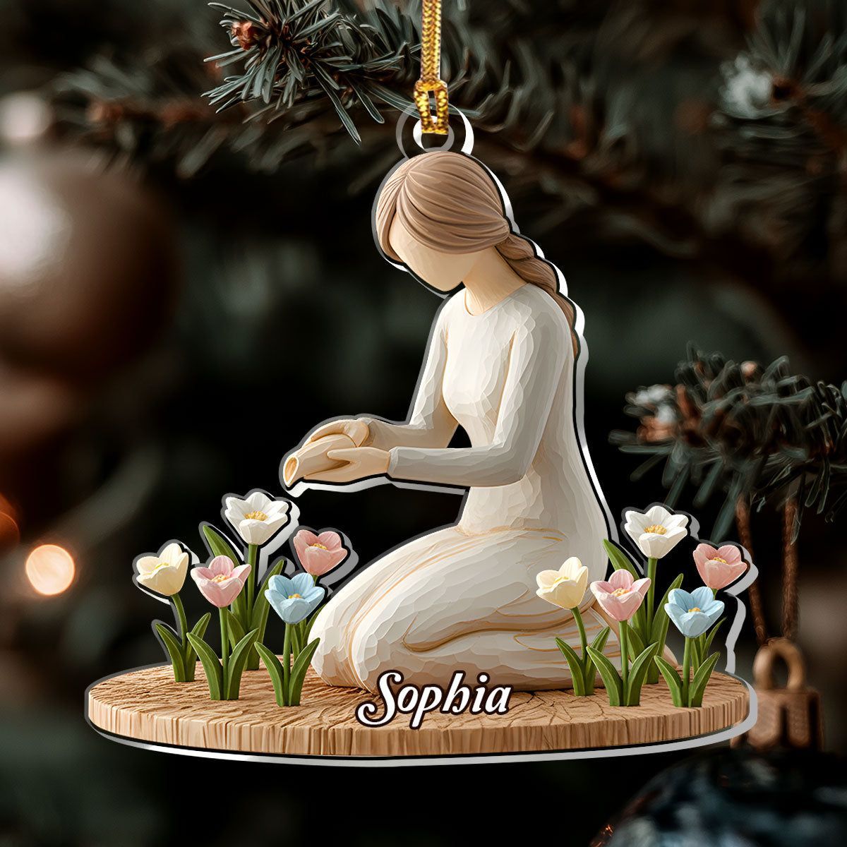 Bare en jente som elsker hagearbeid – personlig 1-lags akrylornament