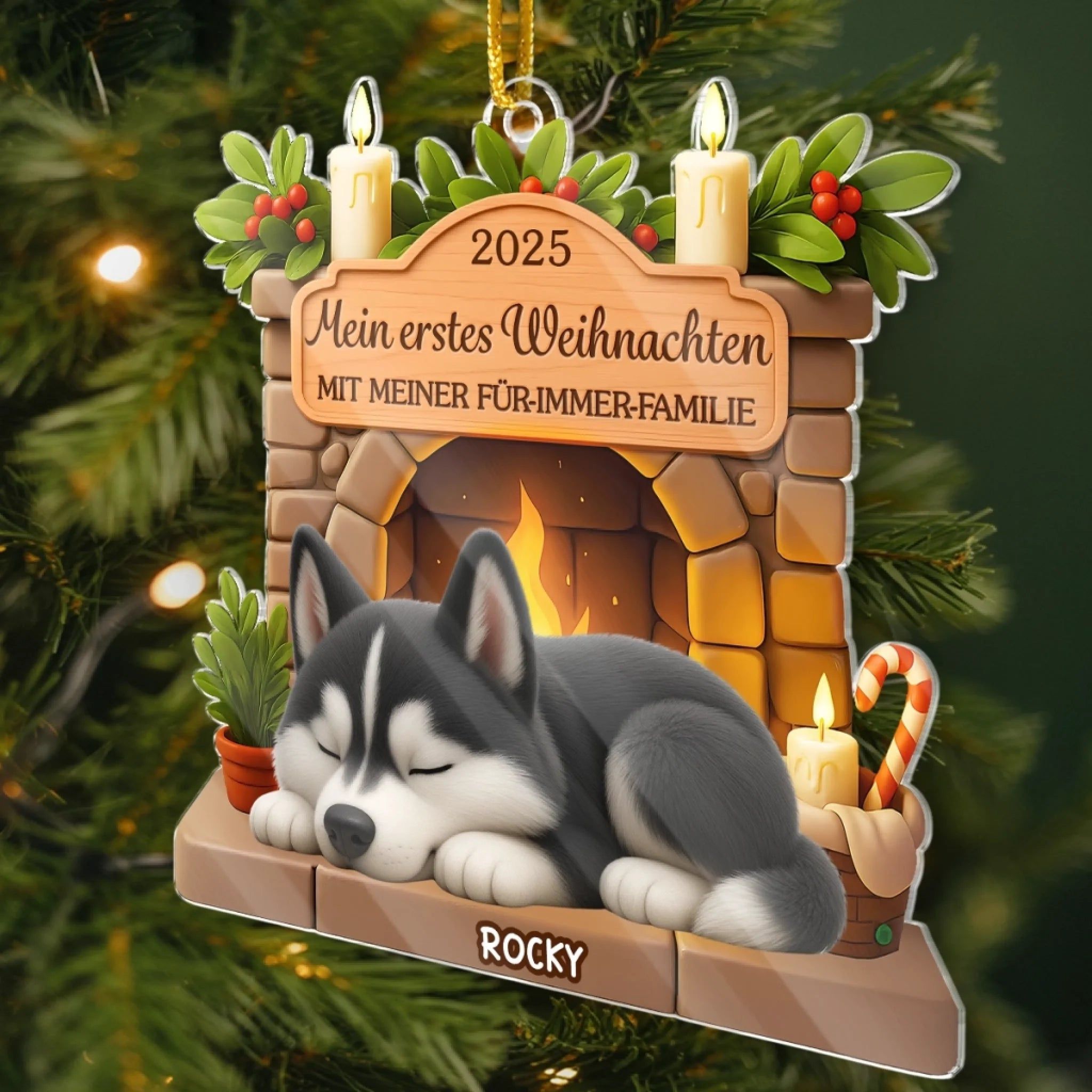 Personlig første julepynt laget av akryl - Personlige jule- og bursdagsgaver til hundeelskere, hundepappa og -mamma - Pawsitively Loved This Christmas