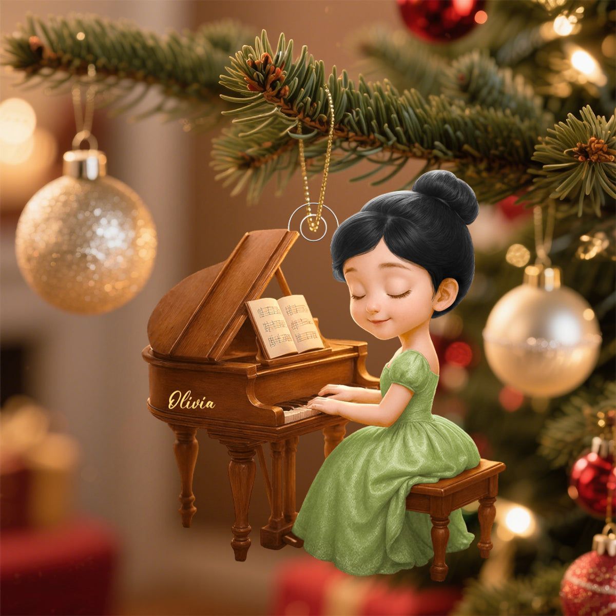 Piano Girl personlig julepynt, gave til pianolskere